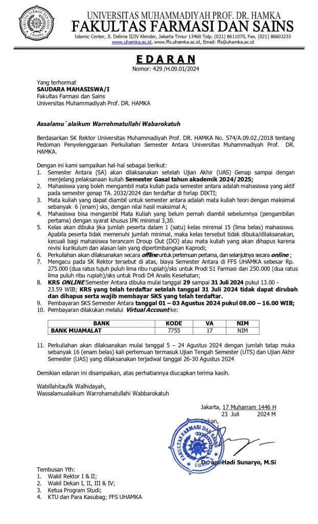 Formulir ONLINE Akademik FFS UHAMKA